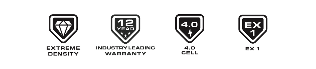 - Extreme Density 4.0Ah Cell Technology Engineered with our time-tested 4.0Ah UL1642 recognized stainless steel encased cylindrical cells. These cells provide exceptional structural integrity and energy density, allowing us to pack 368Ah into a compact footprint (EX1 case) that fits where other battery banks cannot.